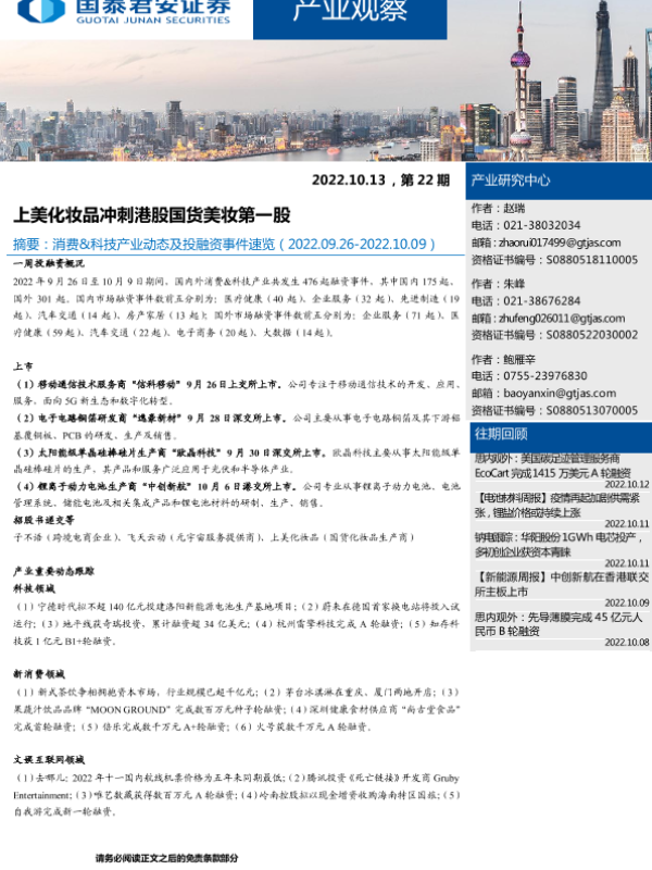 【国泰君安证券】【20221013】产业观察第22期:上美化妆品冲刺港股国货美妆第一股-10页 行业研究