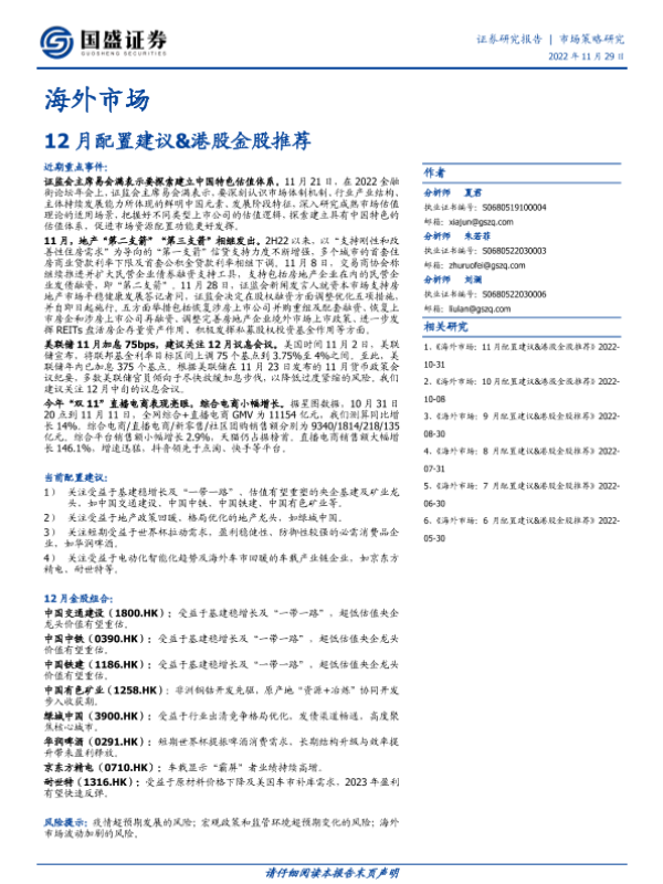 【国盛证券】【20221229】海外市场:12月配置建议&港股金股推荐-17页 行业研究