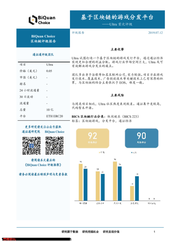 【通证通研究院】【20190712】Ultra首次评级:基于区块链的游戏分发平台-12页 行业研究