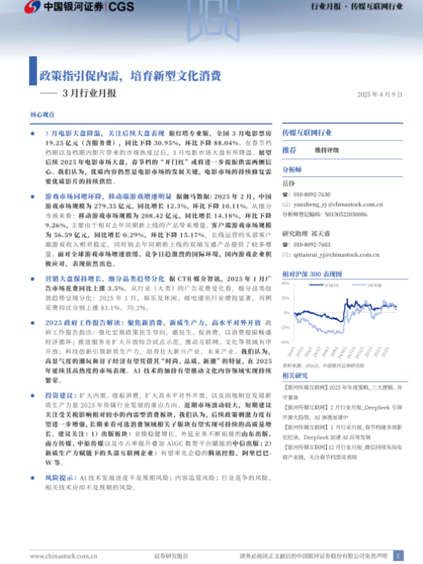 【银河证券】【202503】传媒互联网行业3月行业月报-33页 行业研究
