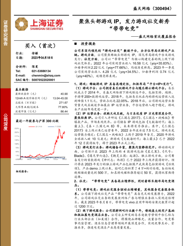 【上海证券】【20230618】盛天网络首次覆盖报告:聚焦头部游戏IP,发力游戏社交新秀“带带电竞”-28页 行业研究