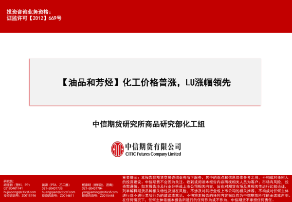 【中信期货】【20240121】油品和芳烃:化工价格普涨,LU涨幅领先-90页 行业研究
