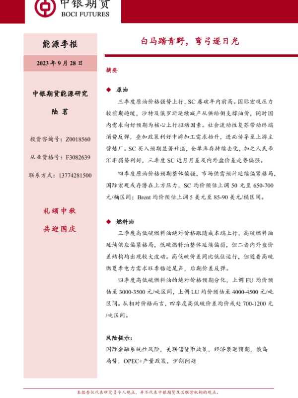 【中银期货】【20230928】能源季报:白马踏青野,弯弓逐日光-47页 行业研究