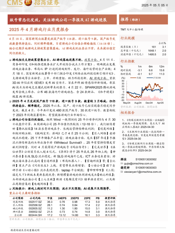 【海通证券】【20250505】2025年4月游戏行业月度报告-18页 行业研究
