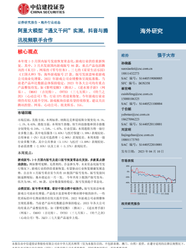 【中信建投证券】【20230410】互联网电商行业:阿里大模型“通义千问”实测,抖音与腾讯视频联手合作-21页 行业研究