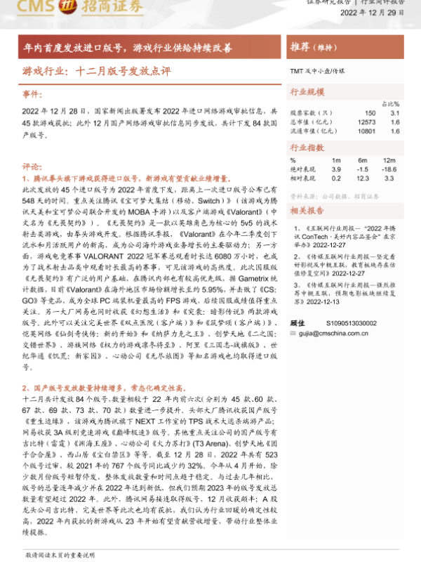 【海通证券】【20221229】游戏行业:十二月版号发放点评-3页 证券期货研究报告