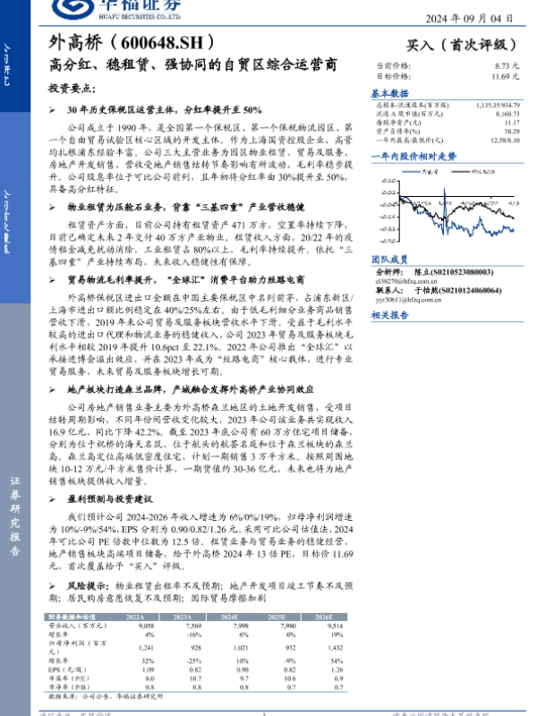 【华福证券】【20240904】外高桥(600648)高分红、稳租赁、强协同的自贸区综合运营商-22页 行业研究