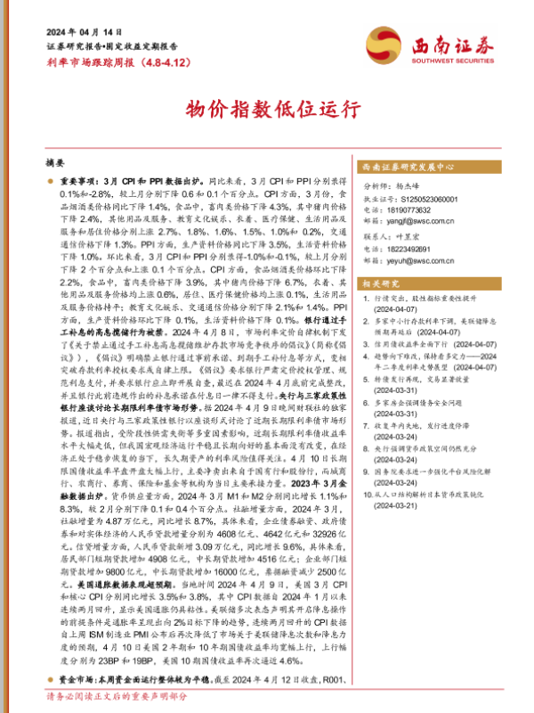 【西南证券】【20240414】利率市场跟踪周报(4.8-4.12)-15页 行业研究