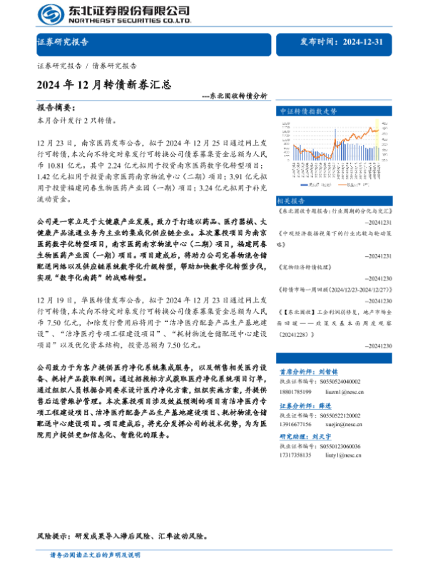 【东北证券】【20241231】2024年12月转债新券汇总-25页 行业研究