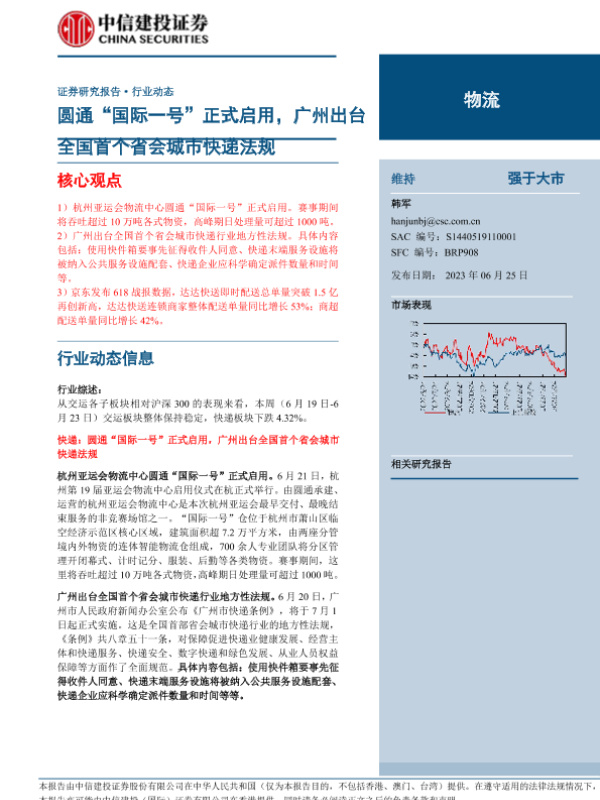 【中信建投证券】【20230625】物流行业:圆通“国际一号”正式启用,广州出台全国首个省会城市快递法规-24页 行业研究
