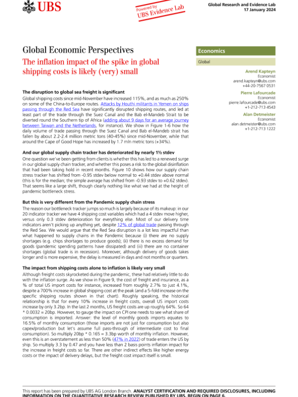 【UBS AG London Branch】【20240117】全球经济学视角:航运成本激增对通胀的影响-9页 行业研究