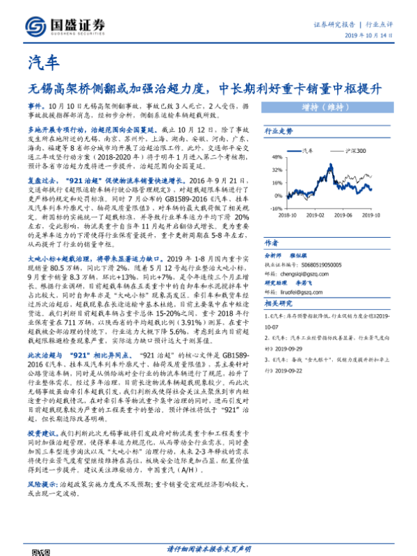 【国盛证券】【20191014】无锡高架桥侧翻或加强治超力度,中长期利好重卡销量中枢提升-11页 行业研究
