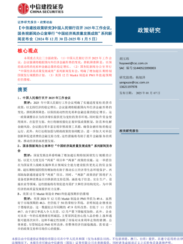 【中信建投证券】【20250107】5年工作会议,国务院新闻办公室举行“中国经济高质量发展成效”系列新闻发布会-10页 宏观策略