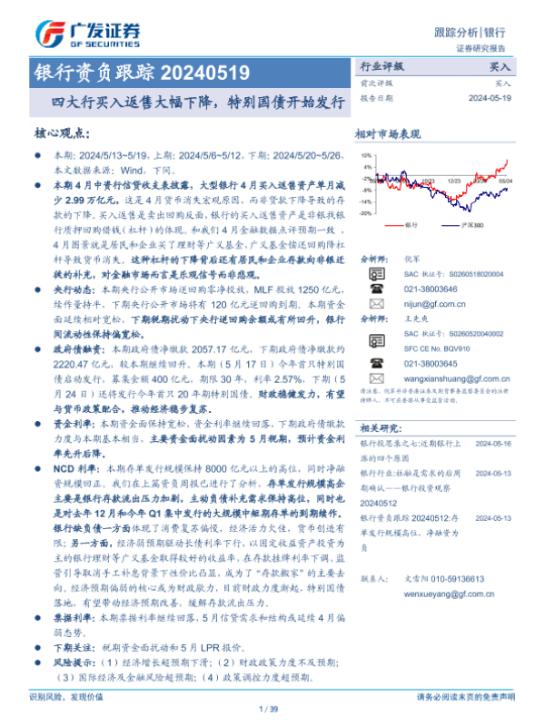 【广发证券】【20240519】银行业资负跟踪:四大行买入返售大幅下降,特别国债开始发行-39页 行业研究