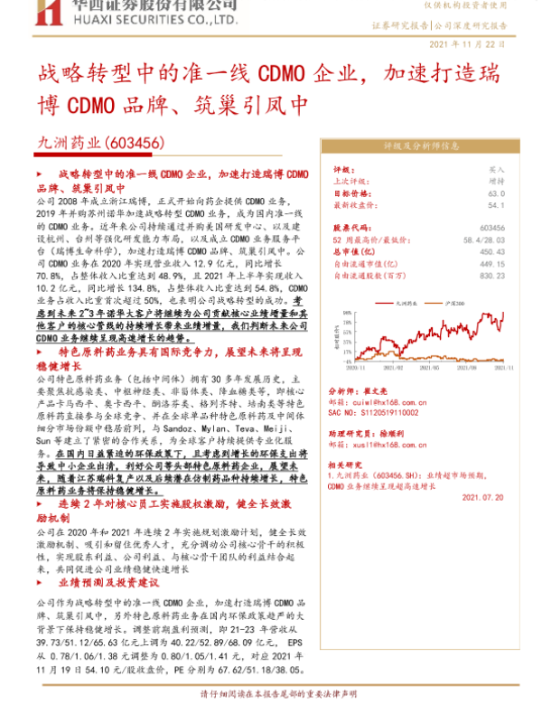 【华西证券】【20211122】战略转型中的准一线CDMO企业,加速打造瑞博CDMO品牌、筑巢引凤中-21页 证券期货研究报告