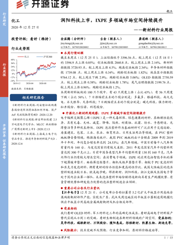 【开源证券】【20201227】新材料行业周报:润阳科技上市,IXPE多领域市场空间持续提升-15页 行业研究