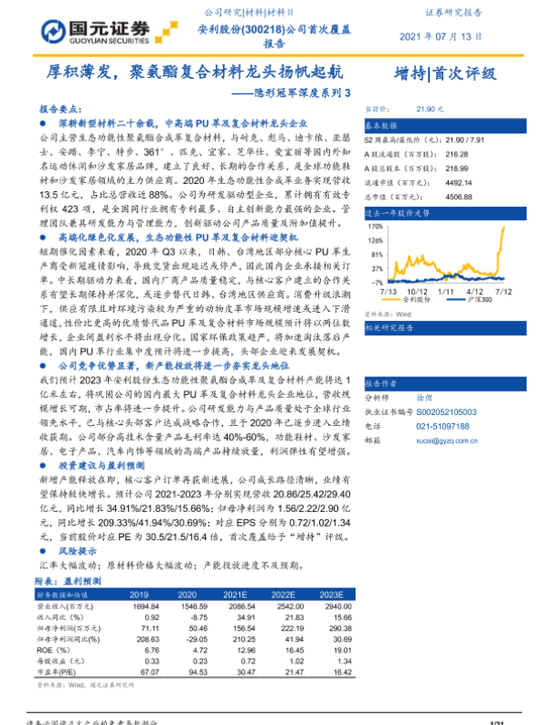 【国元证券】【20210713】厚积薄发,聚氨酯复合材料龙头扬帆起航-31页 公司研究