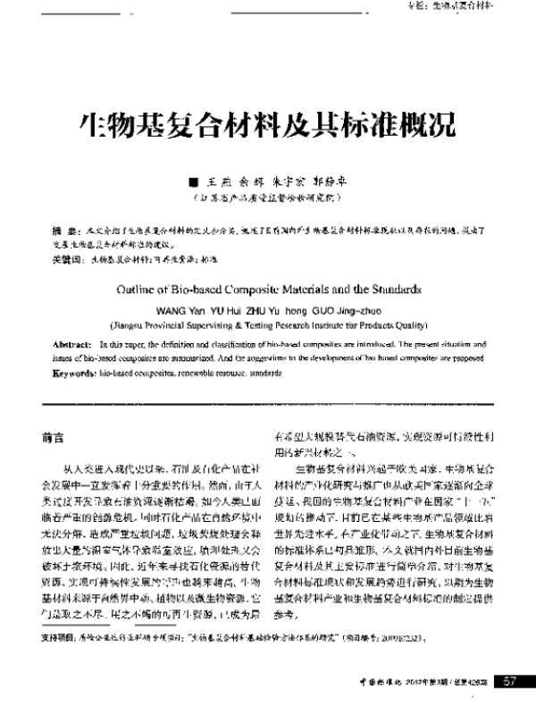 【江苏省产品质量监督检验研究院】【20250222】生物基复合材料及标准研究-4页 学术论文