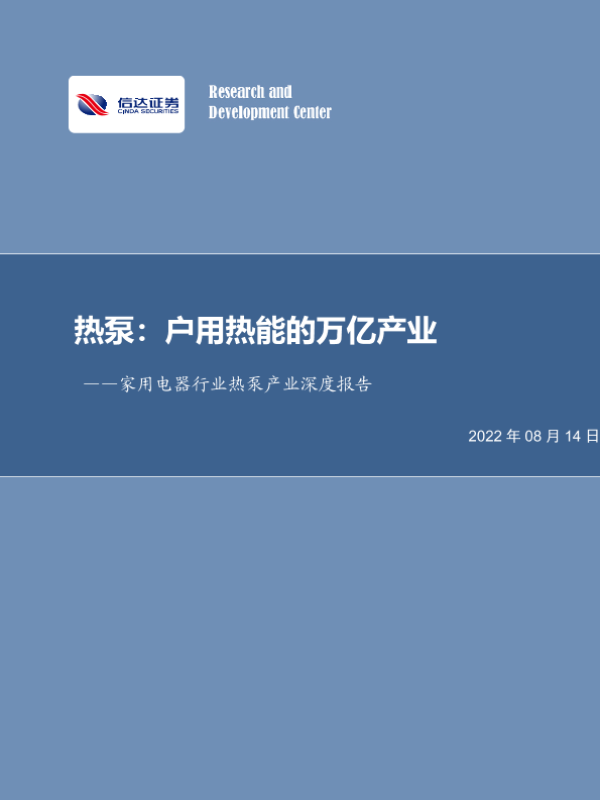 【信达证券】【20220814】家用电器行业热泵产业深度报告:热泵,户用热能的万亿产业-56页 行业研究