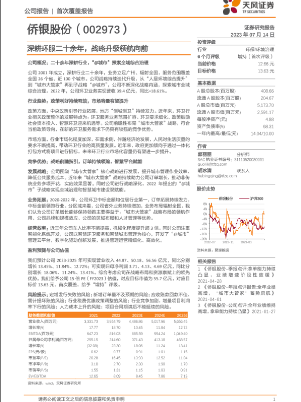 【天风证券】【20230714】侨银股份(002973)深耕环服二十余年,战略升级领航向前-20页 行业研究