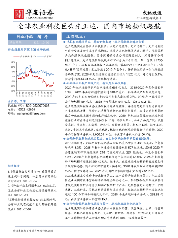 【华安证券】【20211009】农林牧渔行业:全球农业科技巨头先正达,国内市场扬帆起航-52页 行业研究