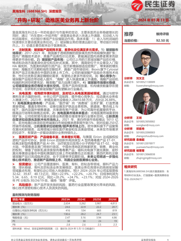 【民生证券】【20240513】昊海生科(688366)深度报告:“并购+研发”助推医美业务再上新台阶-23页 行业研究