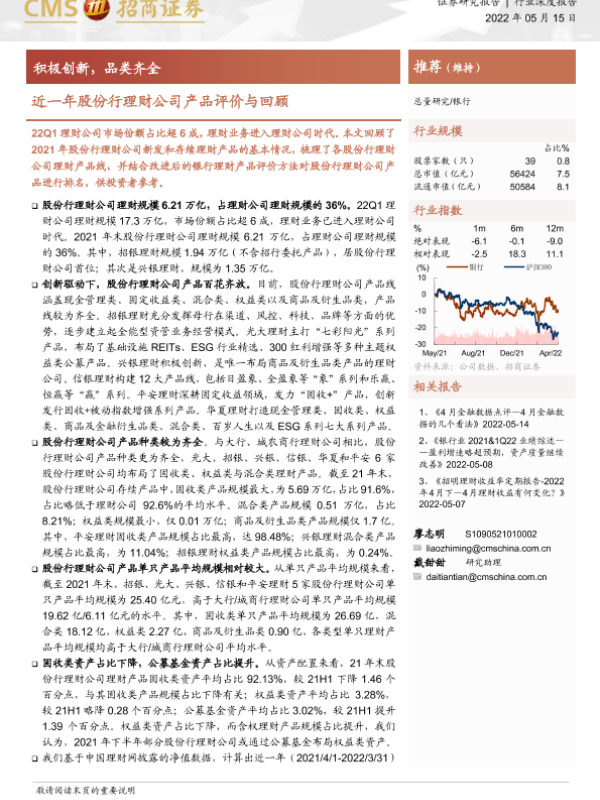 【海通证券】【20220515】银行业近一年股份行理财公司产品评价与回顾:积极创新,品类齐全-22页 行业研究