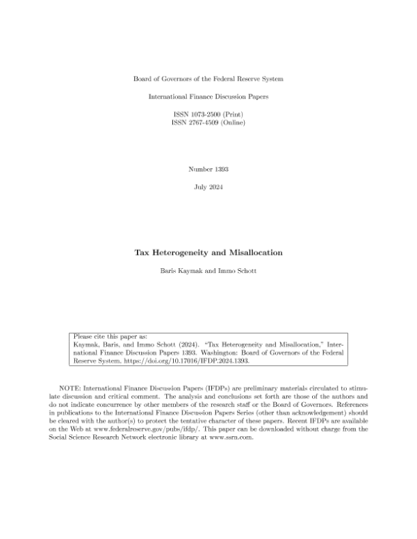 【Board of Governors of the Federal Reserve System】【20240701】Tax Heterogeneity and Misallocation-47页 行业研究
