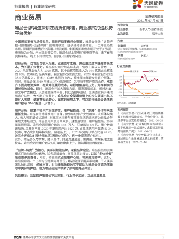 【天风证券】【20210707】商业贸易行业:唯品会多渠道深耕在线折扣零售,商业模式打造独特平台优势-23页 行业研究
