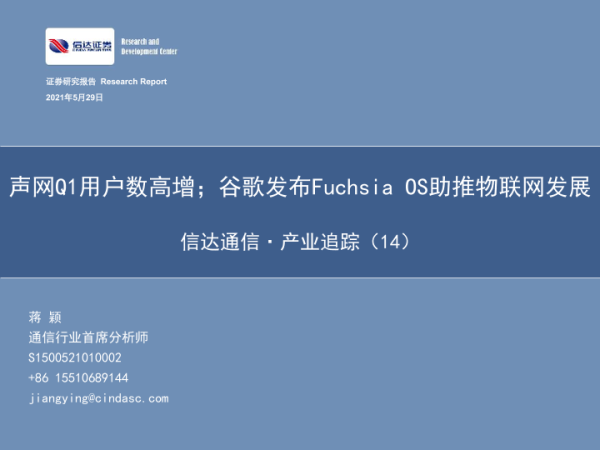 【信达证券】【20210529】信达通信·产业追踪(14):声网Q1用户数高增;谷歌发布Fuchsia OS助推物联网发展-57页 行业研究