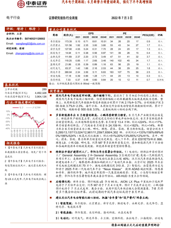 【中泰证券】【20220703】汽车电子周跟踪:6月新势力销量创新高,强化下半年高增预期-18页 行业研究