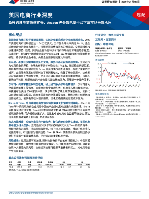 【国信证券】【20240105】国信证券:美国电商行业深度-新兴跨境电商快速扩张-Amazon等头部电商平台下沉市场份额承压-22页 行业研究
