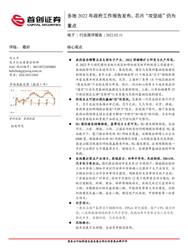 【首创证券】【20220211】多地2022年政府工作报告发布,芯片“攻坚战”仍为重点-6页 行业研究