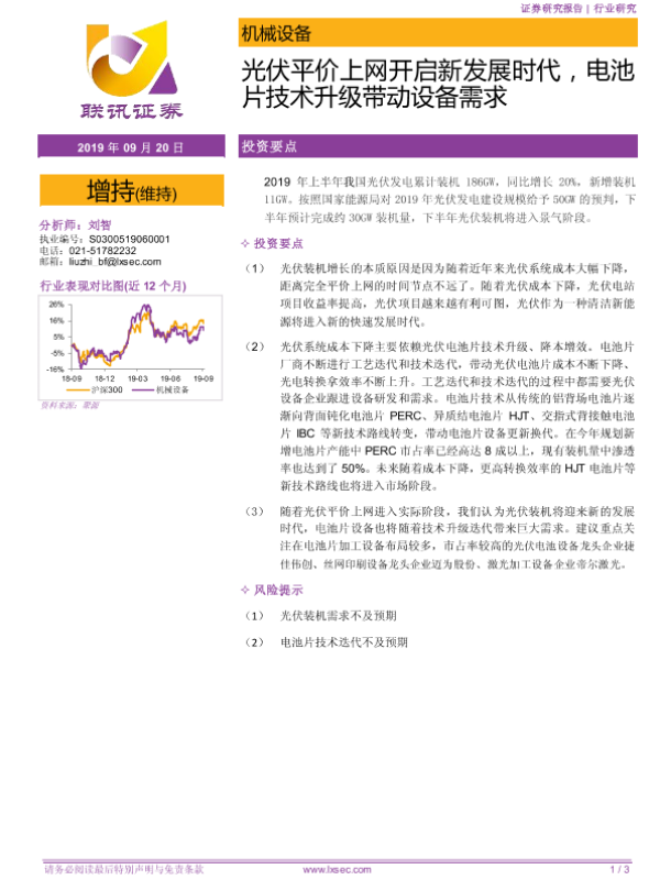 【粤开证券】【20190920】机械设备:光伏平价上网开启新发展时代,电池片技术升级带动设备需求-3页 行业研究