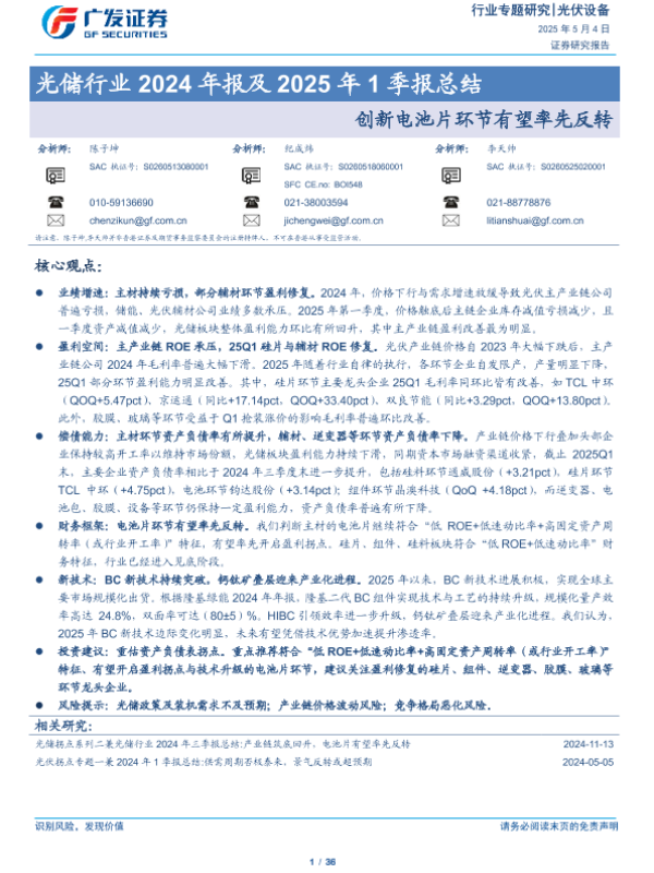【广发证券】【20250504】光储行业2024年报及2025年1季报总结-36页 证券期货研究报告