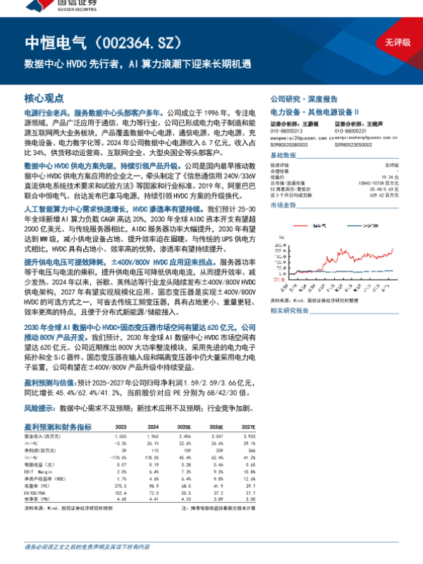 【国信证券】【202508】中恒电气(002364.SZ)数据中心HVDC先行者,AI算力浪潮下迎来长期机遇-30页 证券期货研究报告