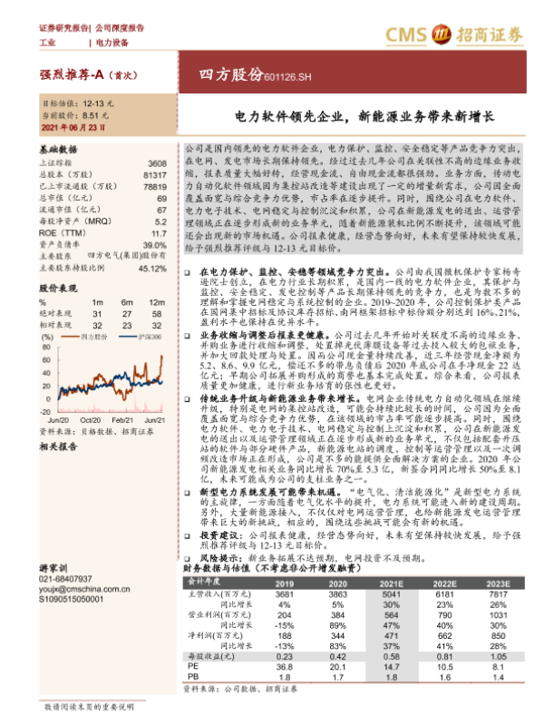 【海通证券】【20210623】四方股份-电力软件领先企业,新能源业务带来新增长-24页 公司研究