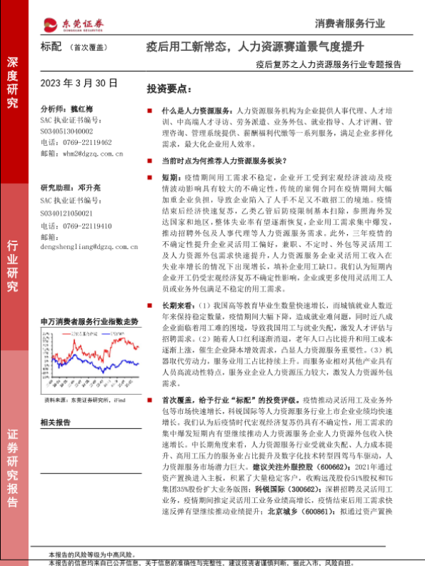 【东莞证券】【20230330】消费者服务行业疫后复苏之人力资源服务行业专题报告:疫后用工新常态,人力资源赛道景气度提升-20页 行业研究