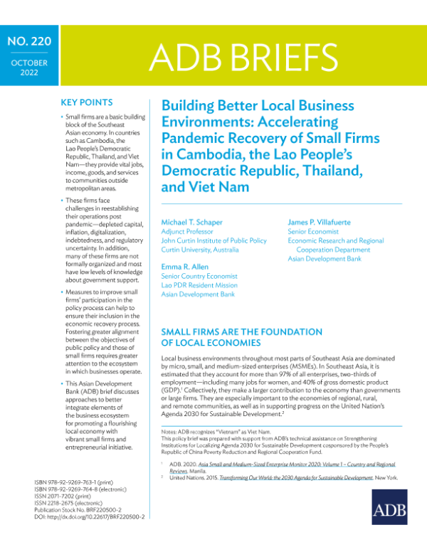 【Asian Development Bank】【20221001】Building Better Local Business Environments Accelerating Pandemic Recovery of Small Firms in Cambodia, the Lao People’s Democratic Republic, Thailand, and Viet Nam-13页