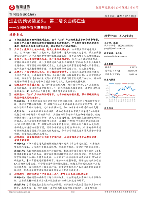 【浙商证券】【20230709】百润股份首次覆盖报告:进击的预调酒龙头,第二增长曲线在途-32页 行业研究