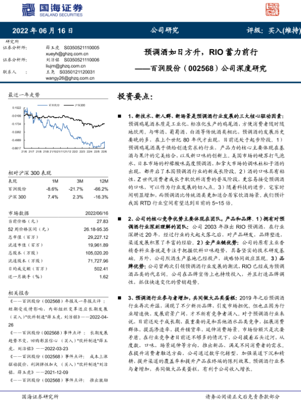 【国海证券】【20220616】20220616-国海证券-百润股份-002568.SZ-公司深度研究:预调酒如日方升,RIO蓄力前行-58页 行业研究