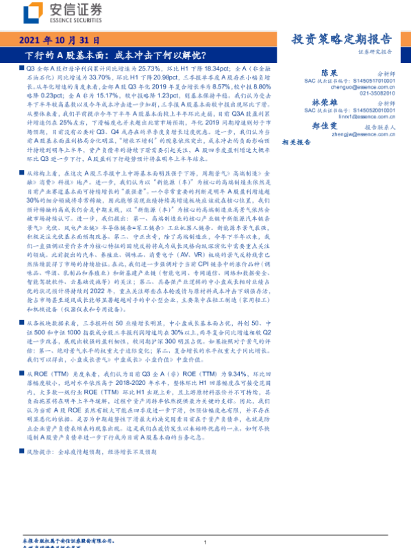 【安信证券】【20211031】下行的A股基本面:成本冲击下何以解忧?-30页 行业研究