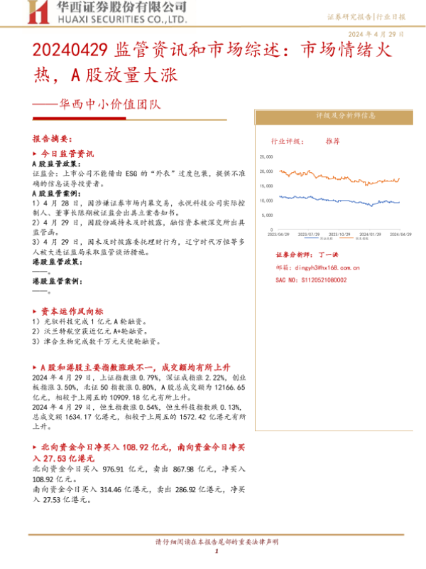 【华西证券】【20240429】20240429监管资讯和市场综述:市场情绪火热,A股放量大涨-13页 行业研究