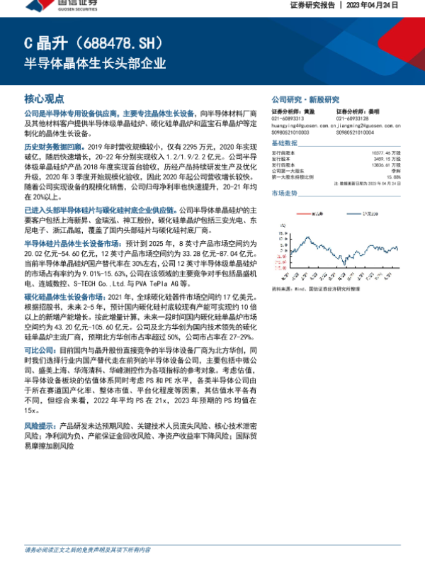 【国信证券】【20230424】晶升股份(688478)半导体晶体生长头部企业-16页 行业研究