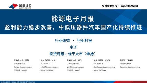 【国信证券】【20250522】能源电子行业月报:盈利能力稳步改善,中低压器件汽车国产化持续推进-26页 行业研究