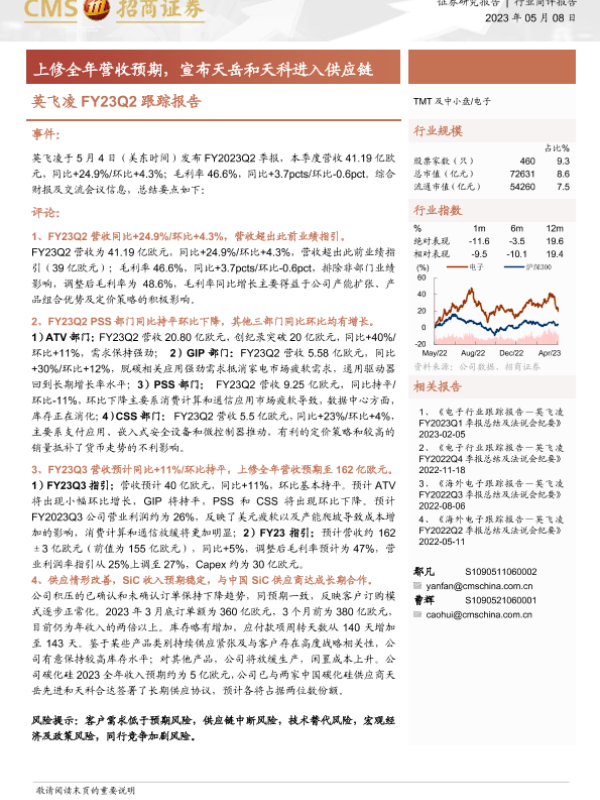 【海通证券】【20230508】英飞凌FY23Q2跟踪报告-上修全年营收预期,宣布天岳和天科进入供应链-13页 行业研究