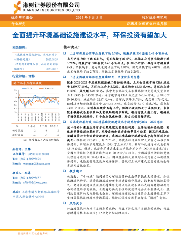 【湘财证券】【20230905】全面提升环境基础设施建设水平,环保投资有望加大-12页 行业研究