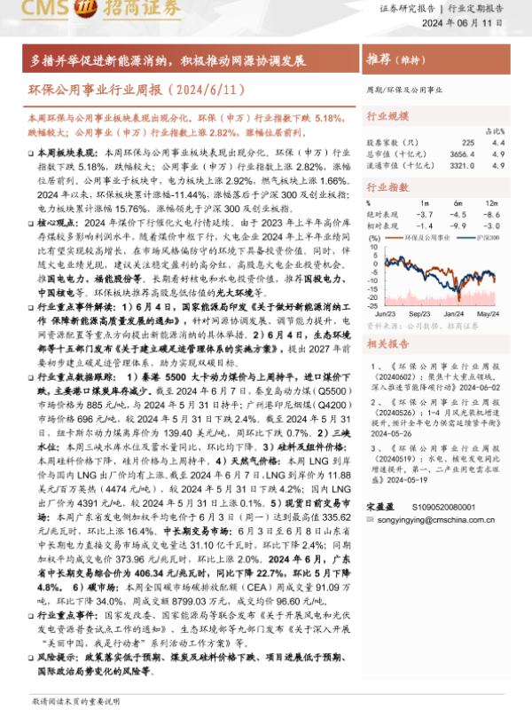 【海通证券】【20240611】环保公用事业行业周报:多措并举促进新能源消纳,积极推动网源协调发展-22页 行业研究