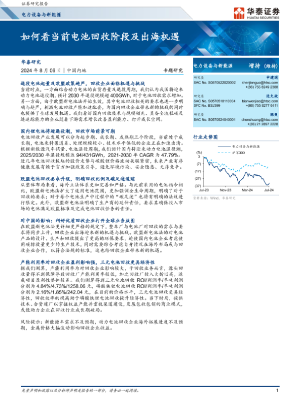 【华泰证券】【20240806】如何看当前电池回收阶段及出海机遇-23页 行业研究