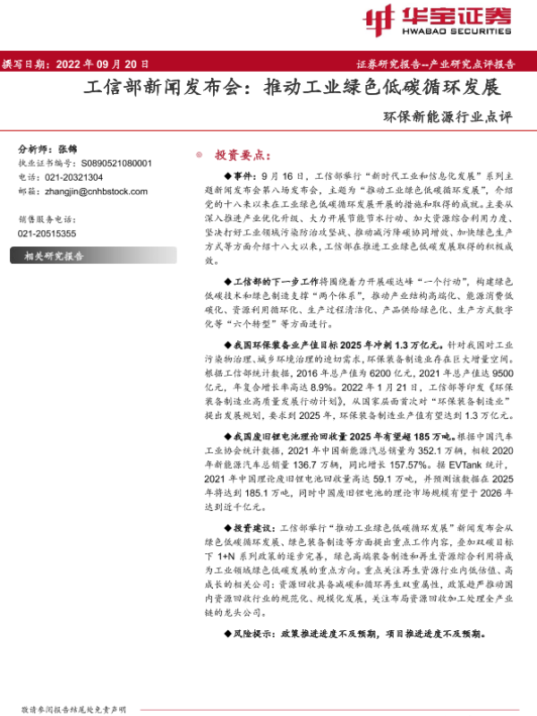 【华宝证券】【20220920】推动工业绿色低碳循环发展-10页 行业研究